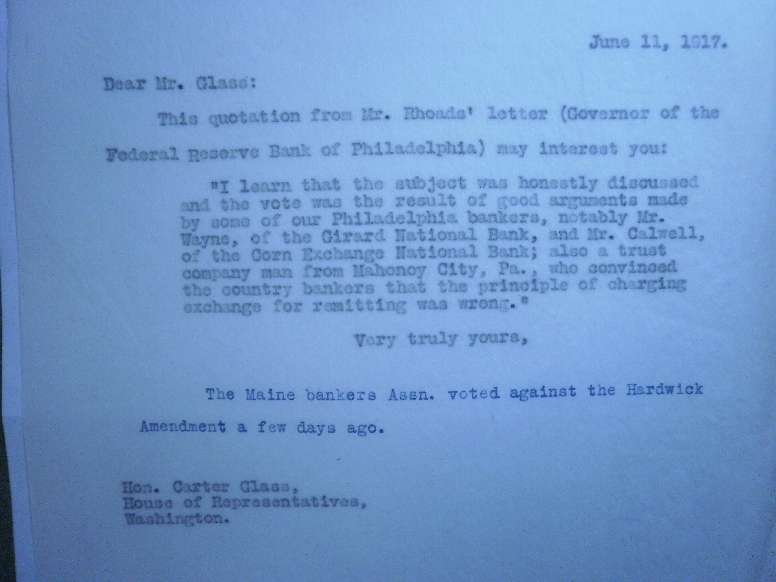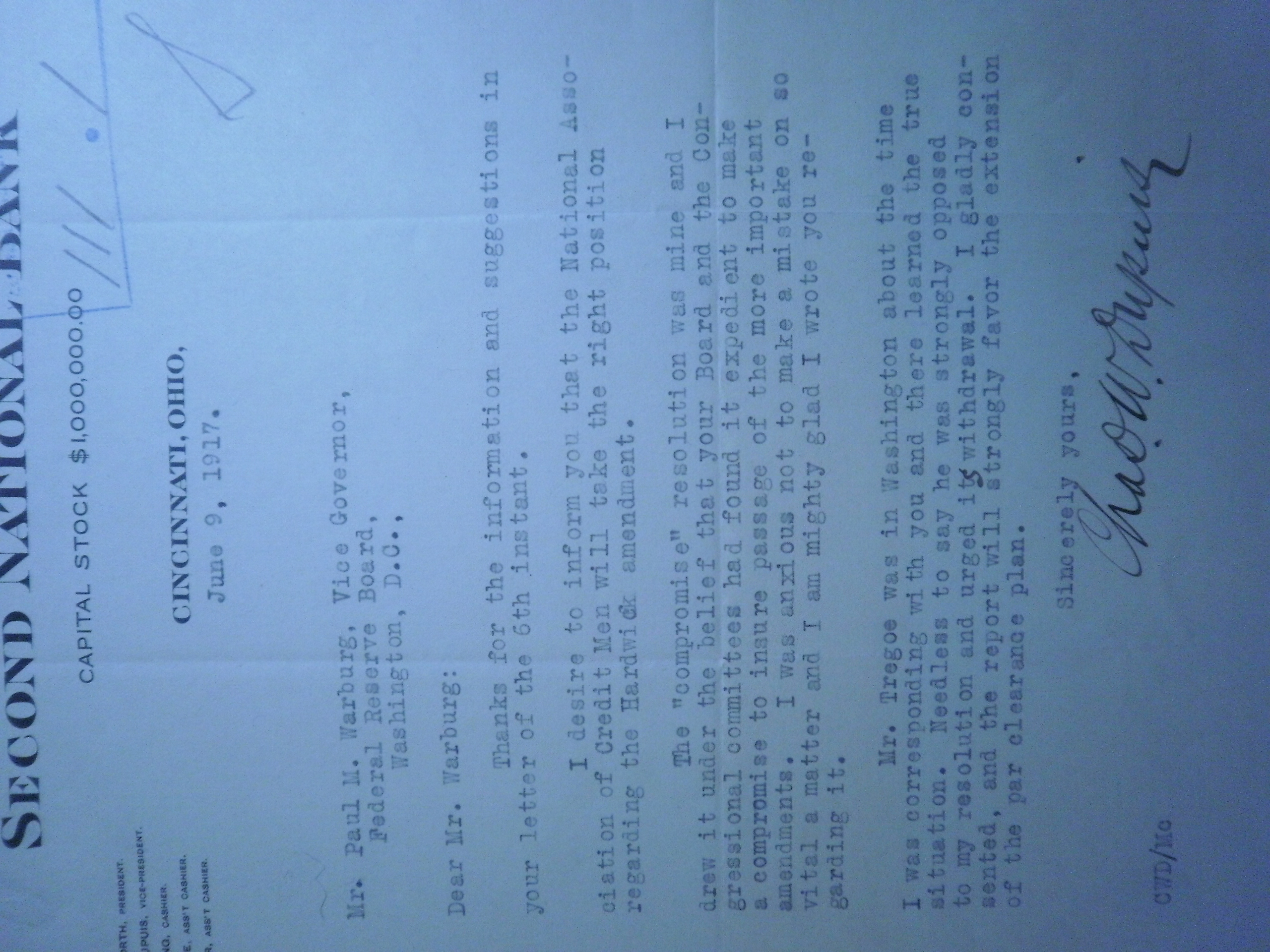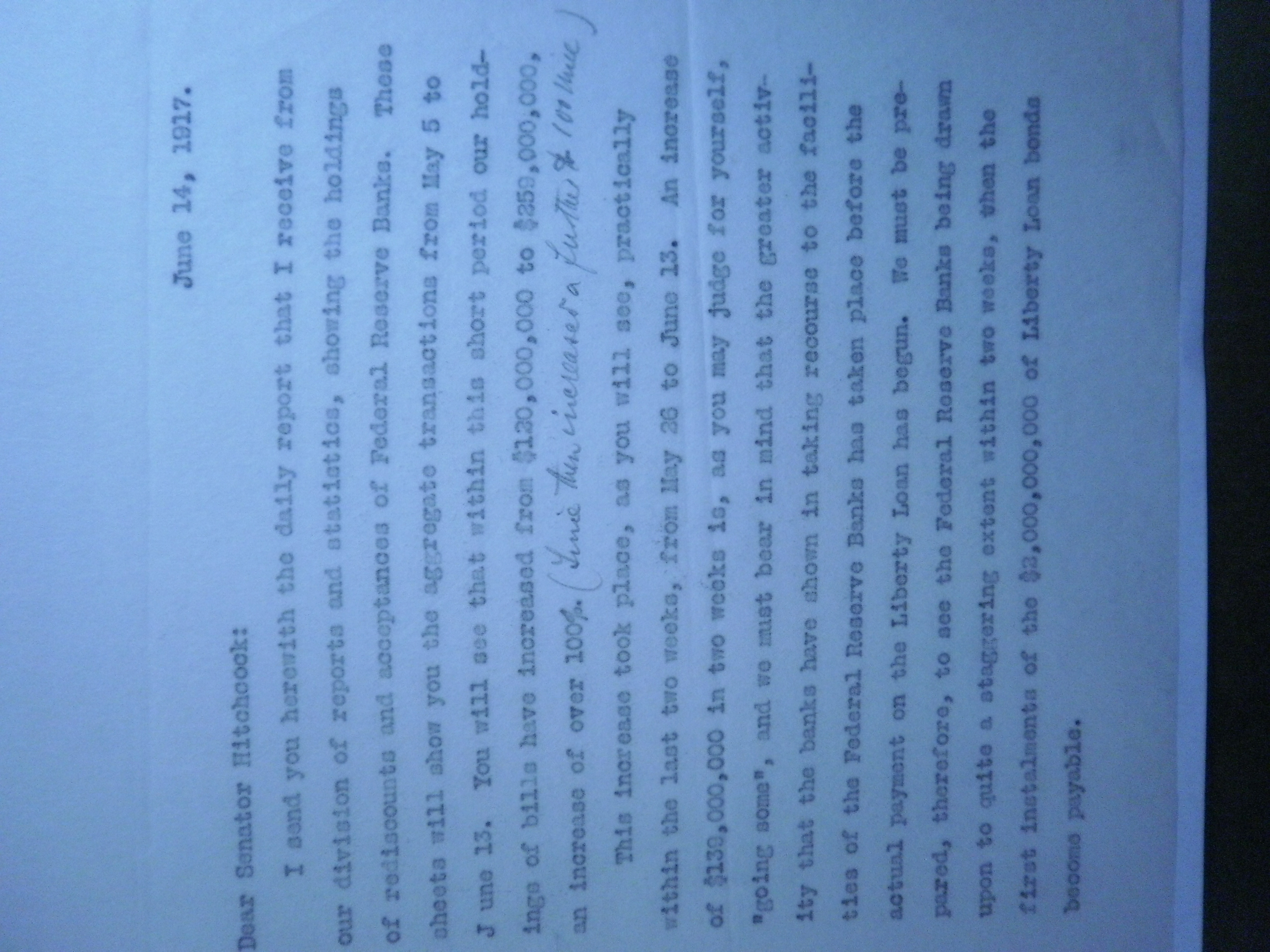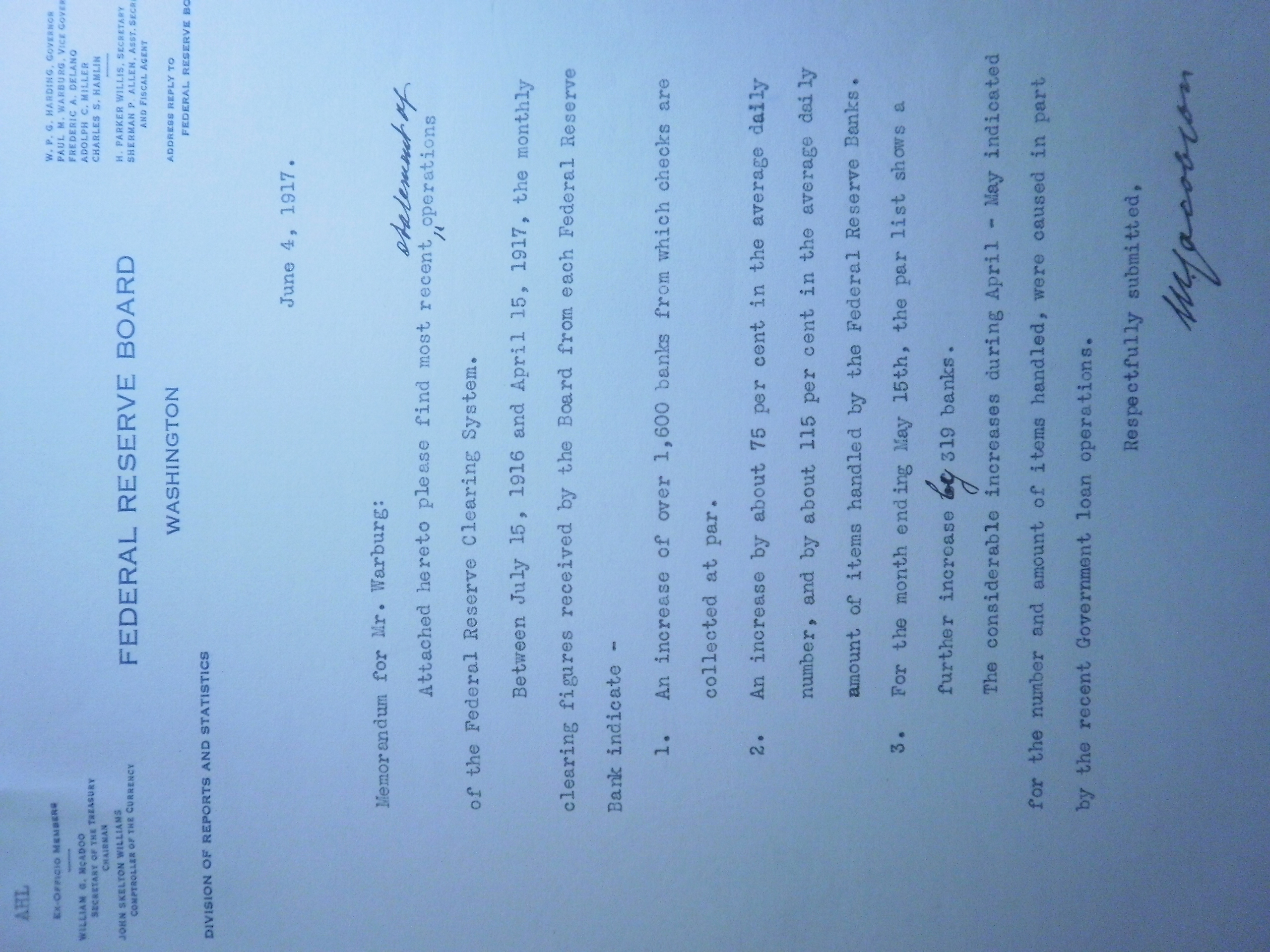 PB240173 6-6-17 W to Chairman Fed Chair Harding re discounts of Liberty Loan.JPG