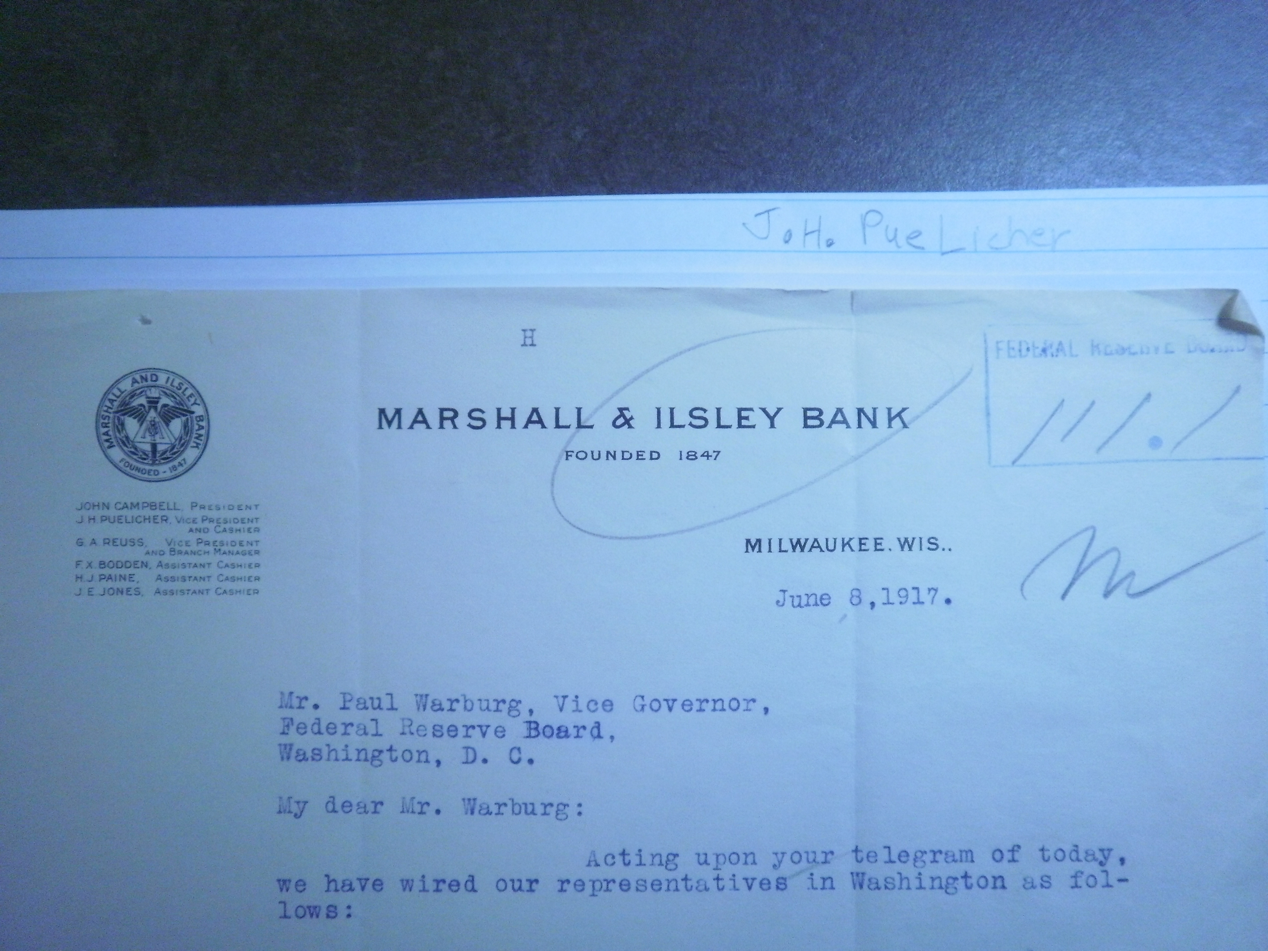 PB240191 6-8-17 LETTER PUELICHER VP MARSHALL AND ILSLEY BK TO W RE CONGRESS 1 .JPG
