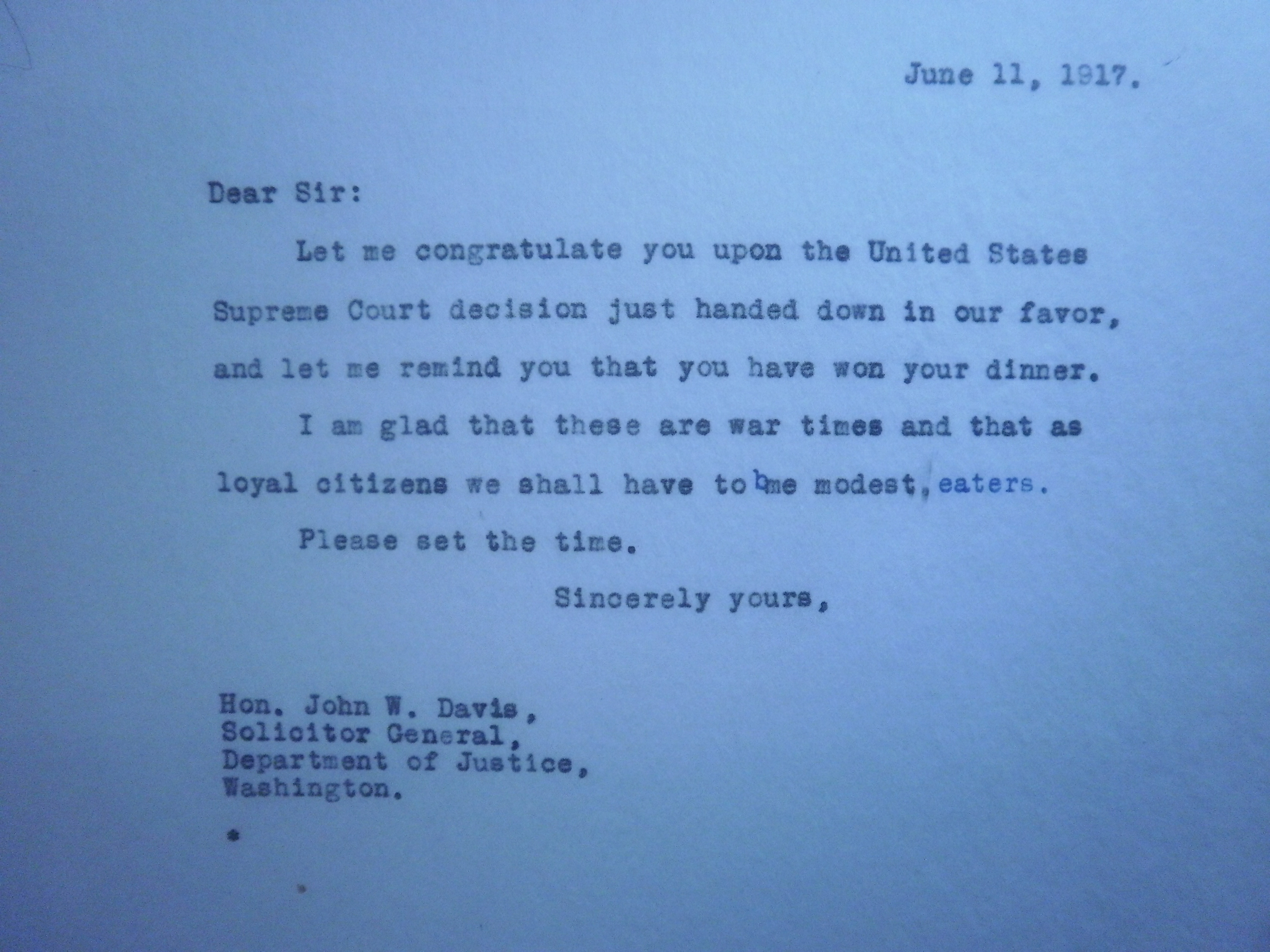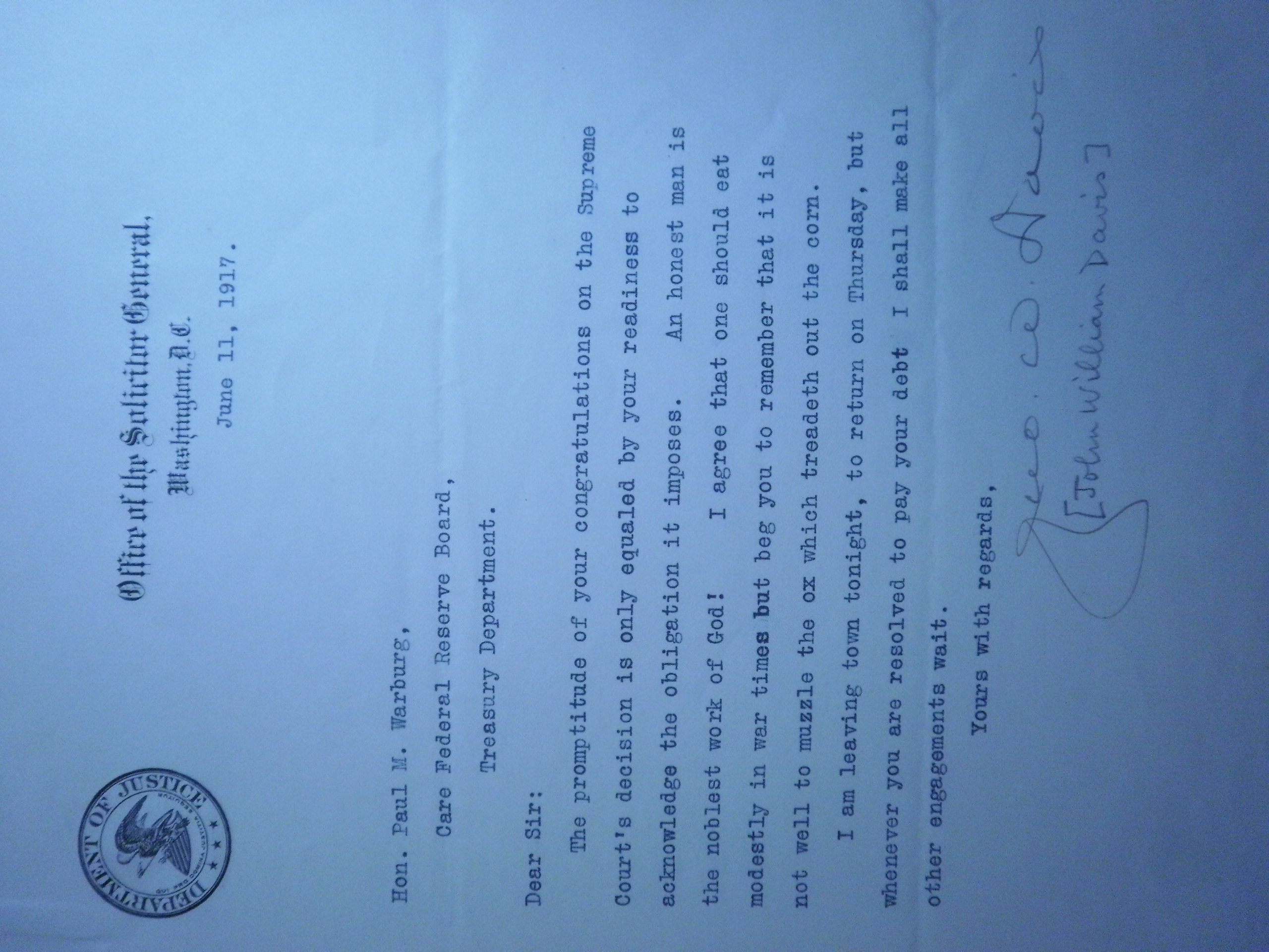 PB240203 6-11-17 SOCITITOR GENERAL OF US JOHN WILLIAM DAVIS TO W - FED CASE 1 .JPG